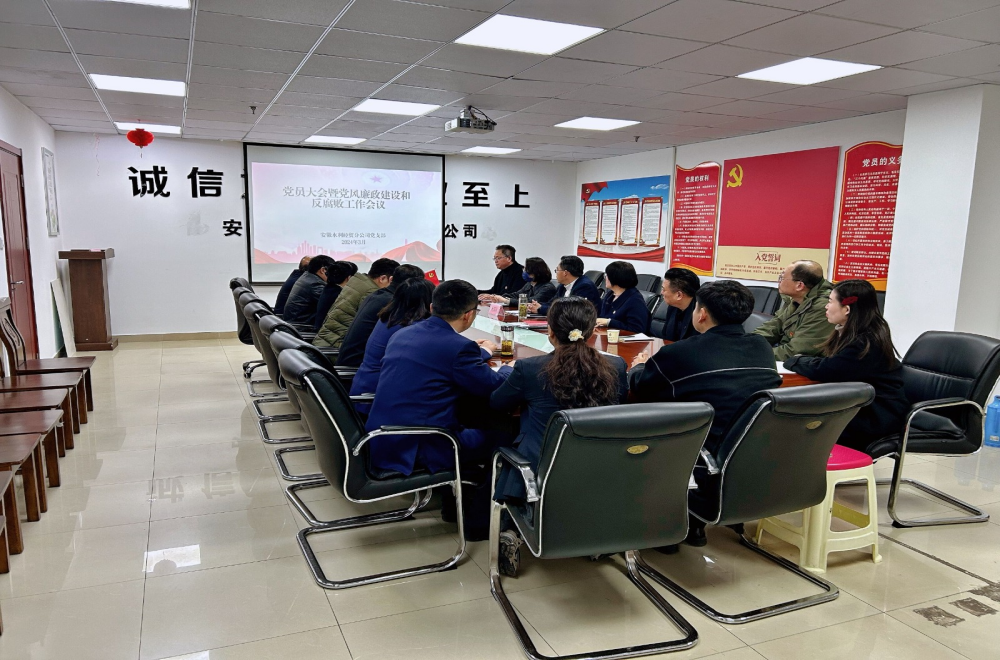 陕西安建党总支组织召开2024年党建工作部署会暨所属党支部书记抓党的建设述职评议会、党风廉政建设工作部署会暨警示教育会。集中宣贯集团党委2024年党风廉政建设和反腐败工作会议精神会。咸阳市纪委常委、监委委员段红杰为广大党员干部上《知敬畏、存戒惧、守底线,脚踏实地走好人生路》的警示教育课。