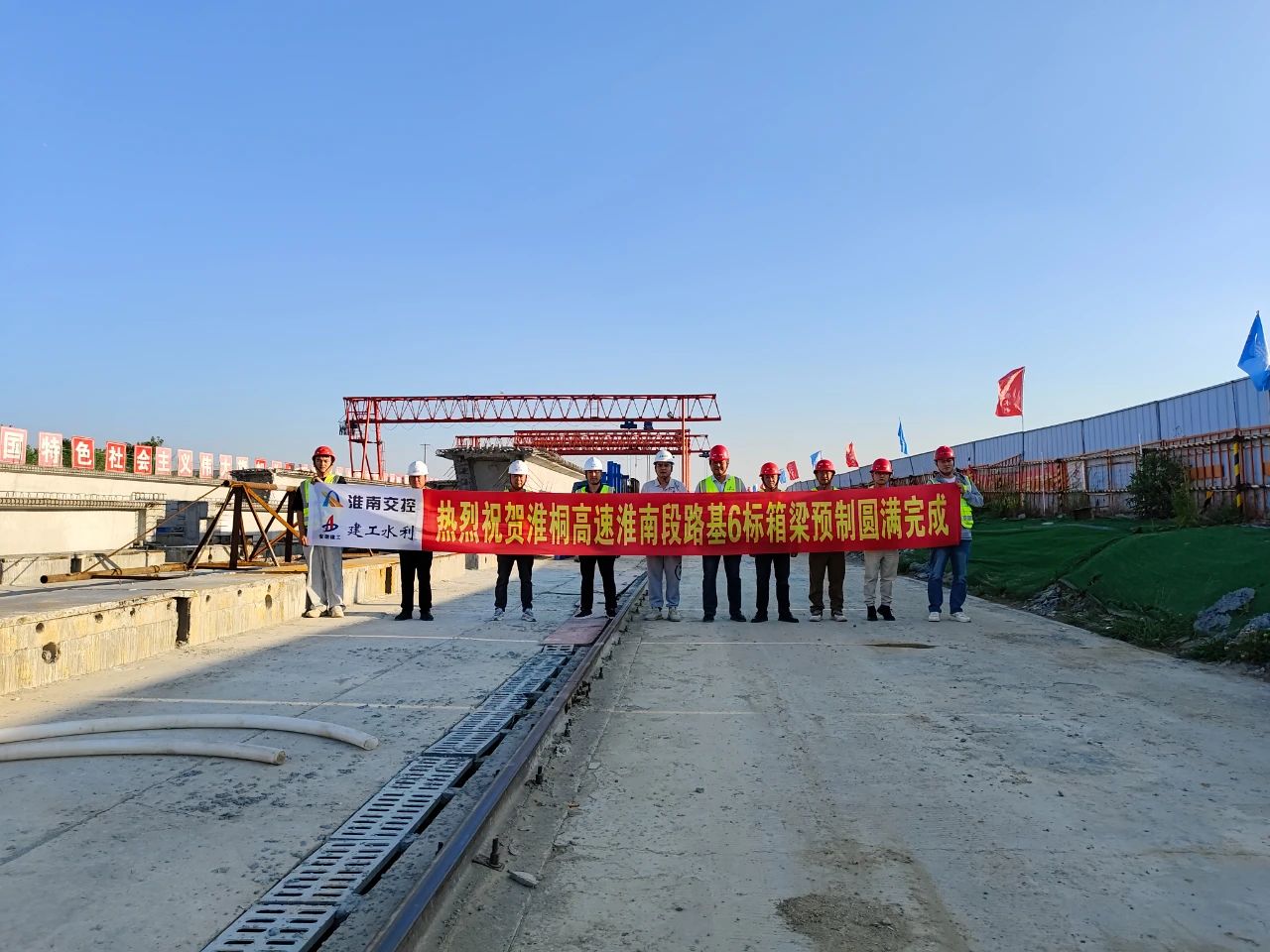 5月11日下午,淮南至桐城高速公路淮南段6标项目全线箱梁预制任务圆满收官。截至当日,各类预制梁板架设进度已达95%,为后续桥面系施工及整体贯通奠定坚实基础。