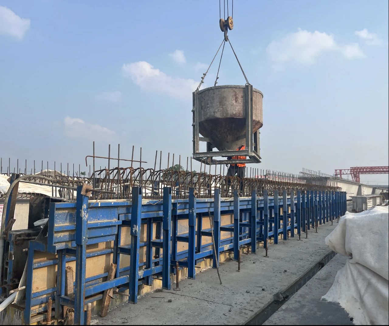 自箱梁预制工作启动以来,项目团队面临工期紧、任务重、技术要求高等挑战。为确保预制工作高效推进,项目团队成立专项攻坚小组,以科技创新为引领,优化施工工艺与组织设计,建立动态质量管控体系,严控梁板预制质量,提升预制精度和施工效率,实现工序衔接零缝隙、安全质量双保障。同时,合理调配资源,加大人材机投入,充分利用有效施工时间,克服不利天气等因素的影响,顺利完成全部箱梁预制任务。